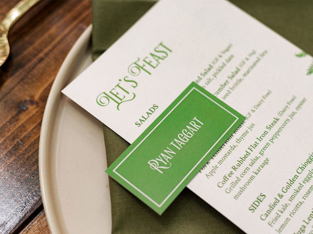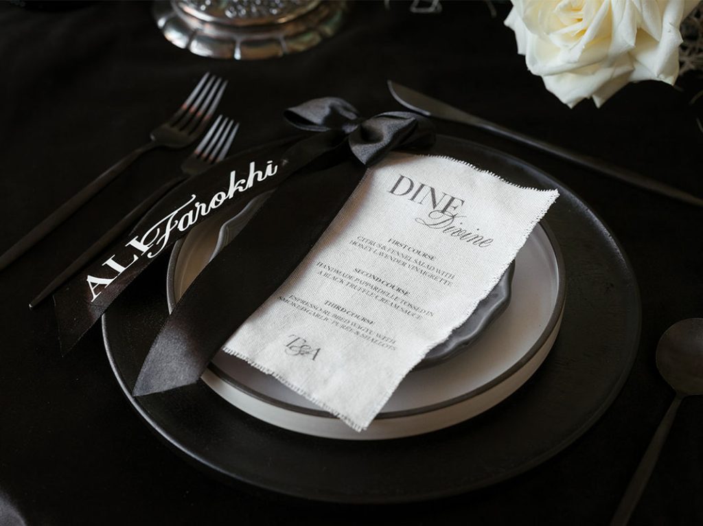 If the cards are too small, guests may struggle to read them. If they are too large, they can dominate the table and compete with other elements, such as the dinner menus. Thoughtful proportion creates visual harmony.