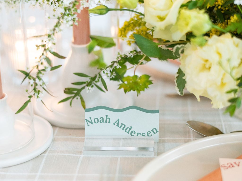 Even with the right typeface, the place card can be illegible if the font size is too small. Guests shouldn’t have to lean forward or scan several cards before finding their place.